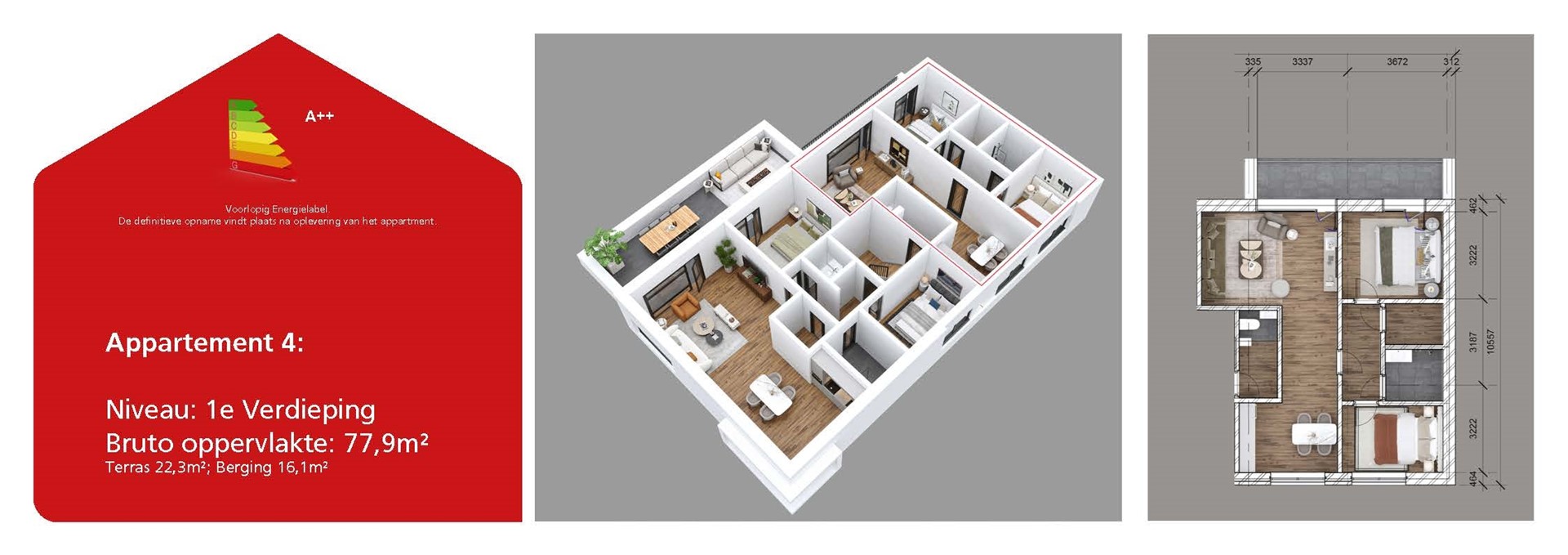 De vier appartementen zijn ideaal voor alleenstaanden en koppels – jong én oud. Elk appartement beschikt over: