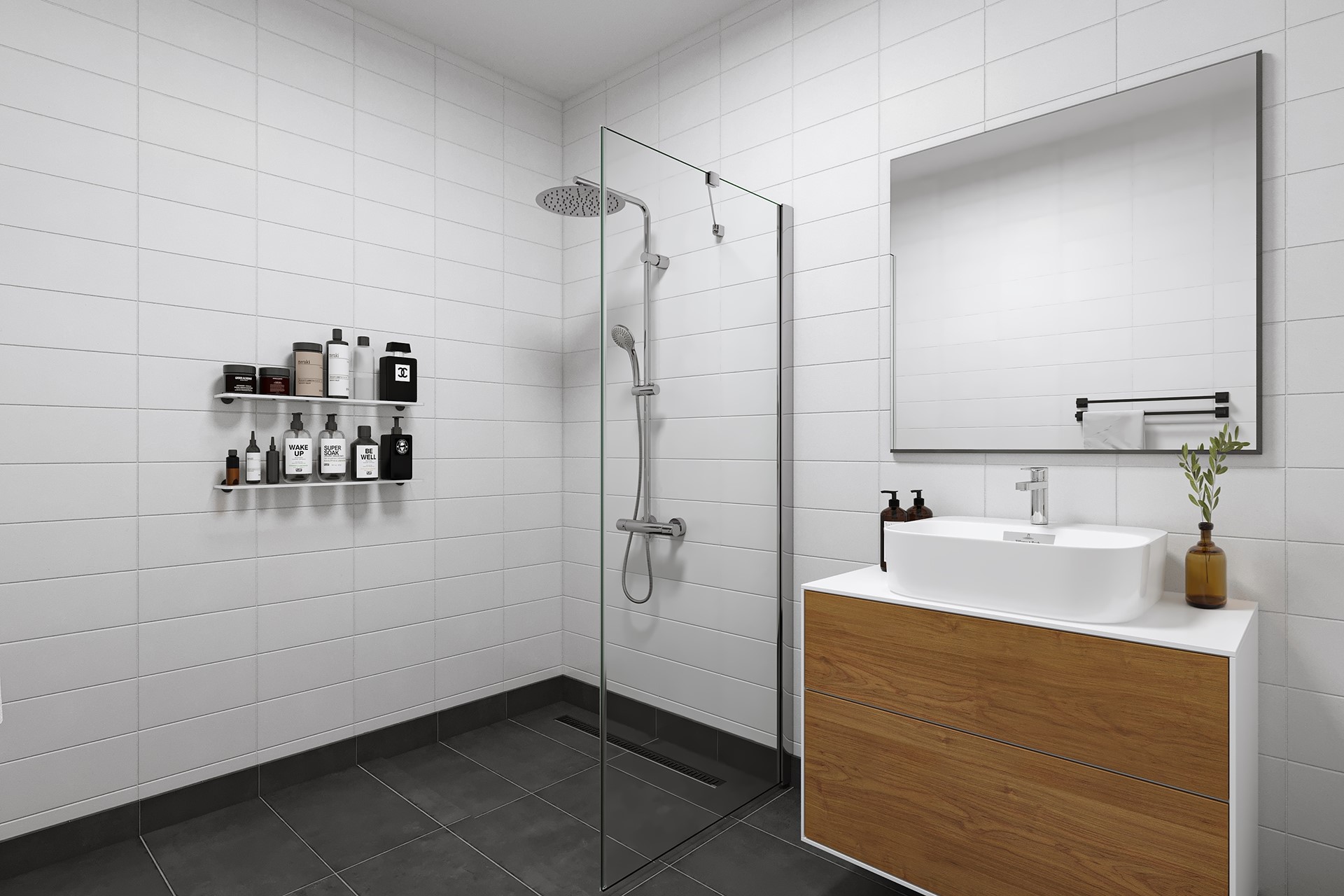 plaatsen van een douche, wastafel en toilet. Net als in de keuken, wordt hier de
